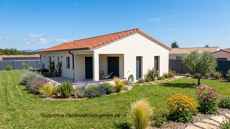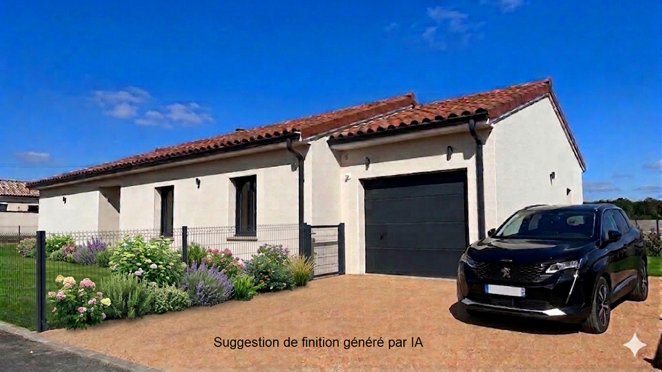 Cette maison neuve, conforme à la RE2020 (étiquette énergétique A), se compose ainsi :